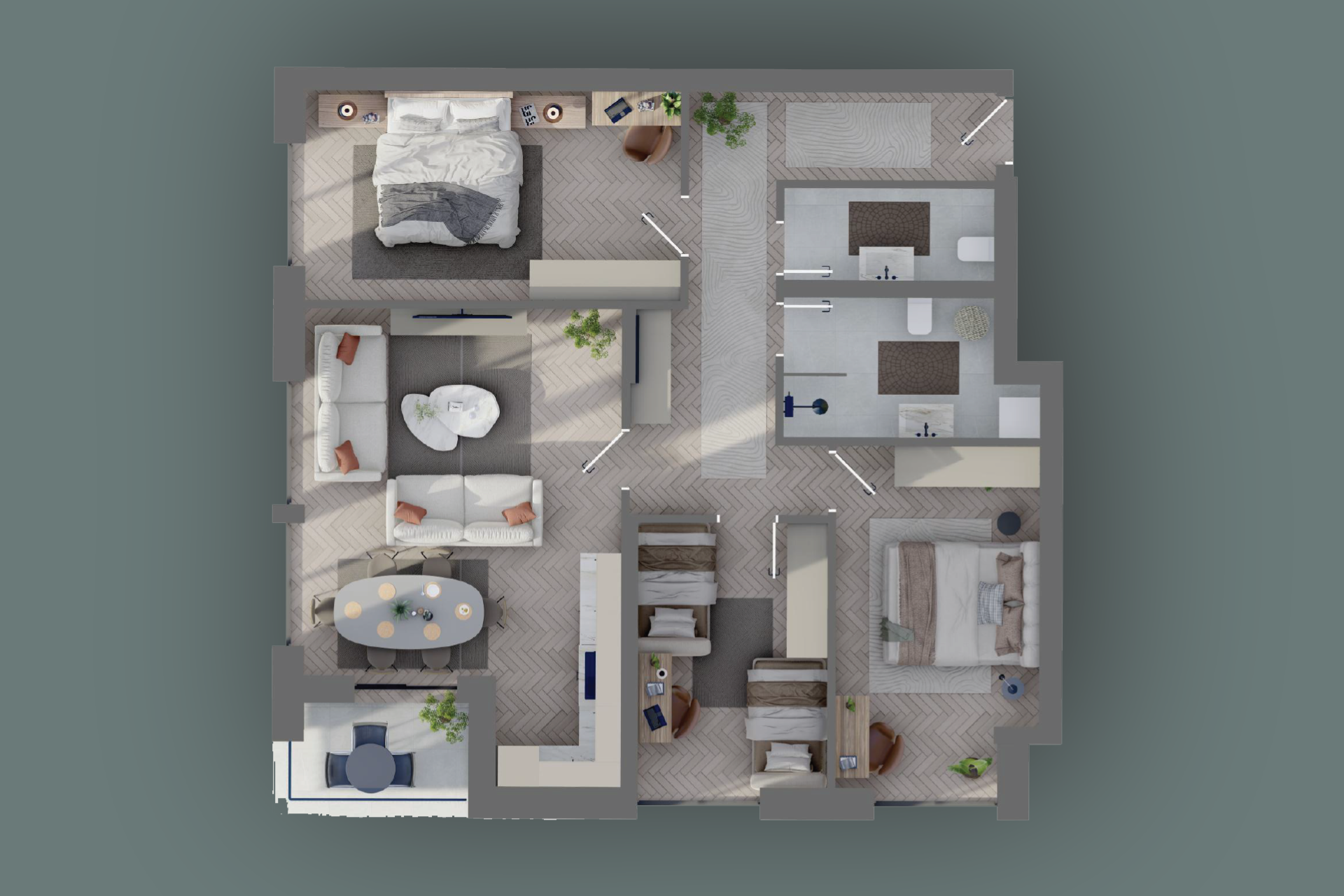 Apartamenti ofron një dizajn modern dhe të rehatshëm, me hapësira të bollshme për çdo nevojë. Qëndrimi ditor i gjerë është ideal për relaksim dhe shoqërim, ndërsa kuzhina dhe tryezaria krijojnë një ambient të ngrohtë për gatime dhe vakte familjare. Me tri dhoma të mëdha gjumi, apartamenti ofron rehati dhe privatësi për të gjithë banorët. Koridori i gjerë mundëson lëvizje të lirë brenda hapësirës. Banjoja dhe tualeti ofrojnë komoditetin e nevojshëm, ndërsa ballkoni është një vend i shkëlqyer për të shijuar ajrin e pastër dhe momentet e relaksit.