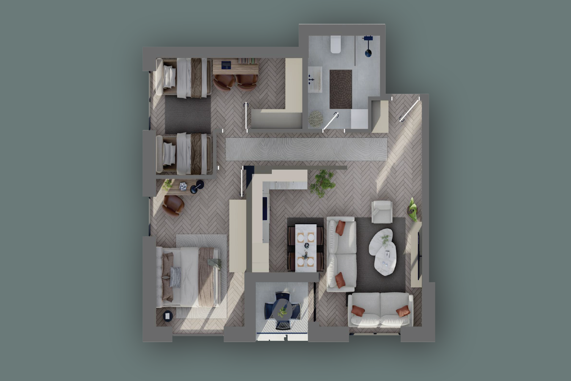 Ky apartament ofron një ambient të ngrohtë dhe të mirëorganizuar për një jetesë të rehatshme. Qëndrimi ditor është i përshtatshëm për relaks dhe socializim, ndërsa kuzhina dhe tryezaria krijojnë një hapësirë të këndshme për gatime dhe vakte familjare. Dy dhomat e gjumit ofrojnë rehati dhe privatësi, ideale për një pushim të qetë. Koridori lehtëson lëvizjen në të gjithë apartamentin, ndërsa banjoja dhe loxha shtojnë komoditetin dhe kënaqësinë për përditshmërinë.