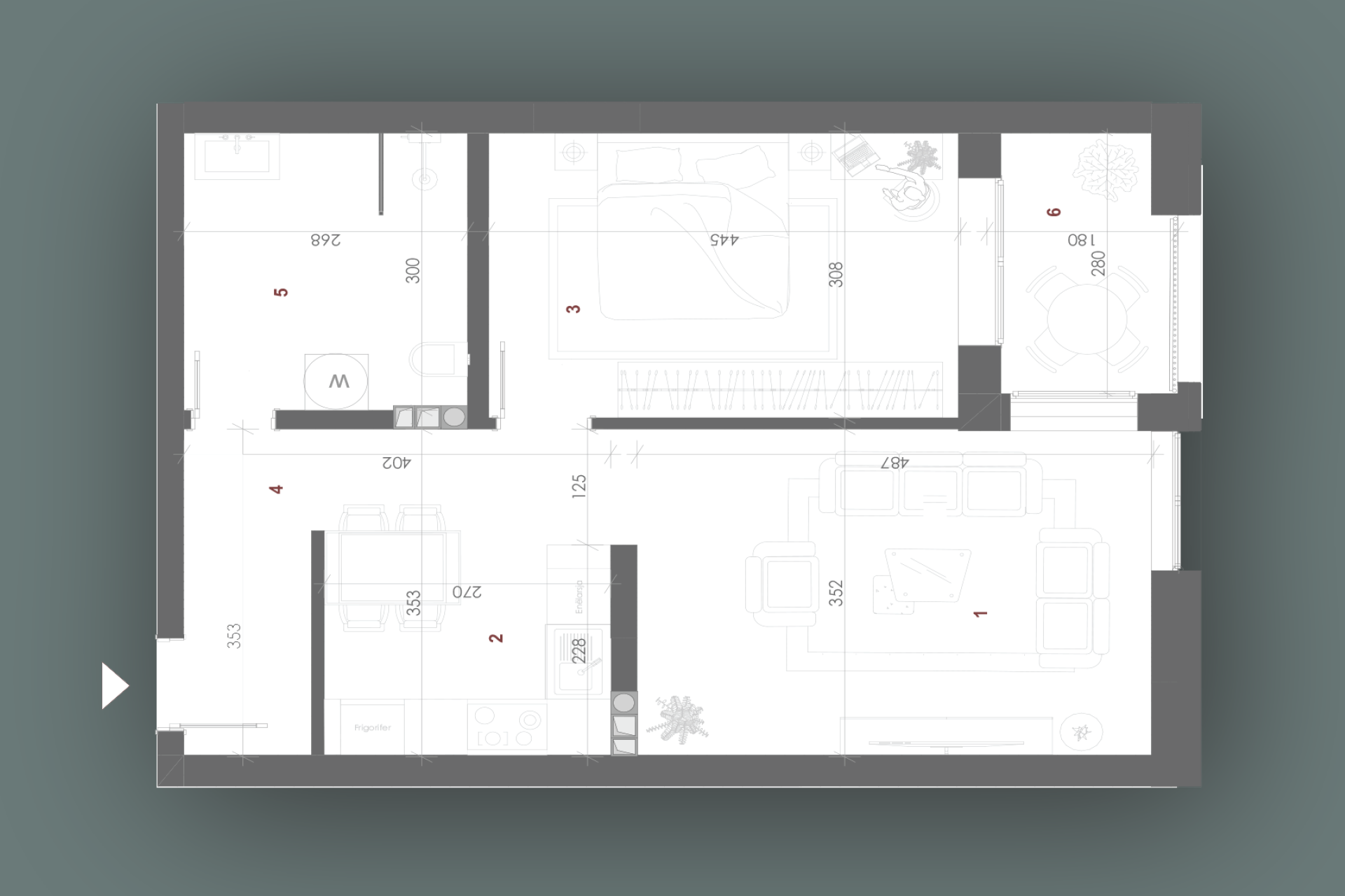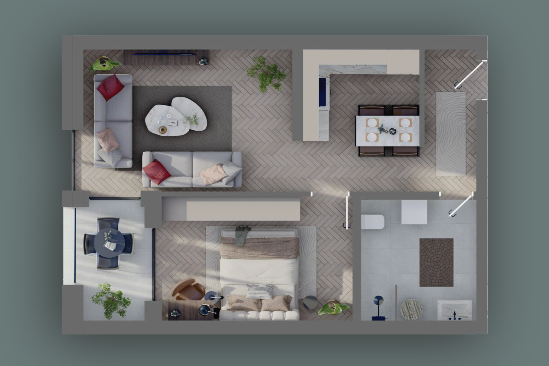 Kjo banesë ofron një ambient të ndriçuar dhe të mirëorganizuar për një jetesë të rehatshme dhe moderne. Qëndrimi ditor është ideal për relaks dhe shoqërim, ndërsa kuzhina dhe tryezaria krijojnë një hapësirë të përshtatshme për gatime dhe vakte familjare. Dhoma e gjumit ofron rehati dhe privatësi, perfekte për një pushim të qetë. Koridori lehtëson lëvizjet mes hapësirave, ndërsa banjoja siguron komoditet të përditshëm. Loxha është hapësira e përkryer për të shijuar ajrin e freskët dhe për momente relaksi jashtë.
