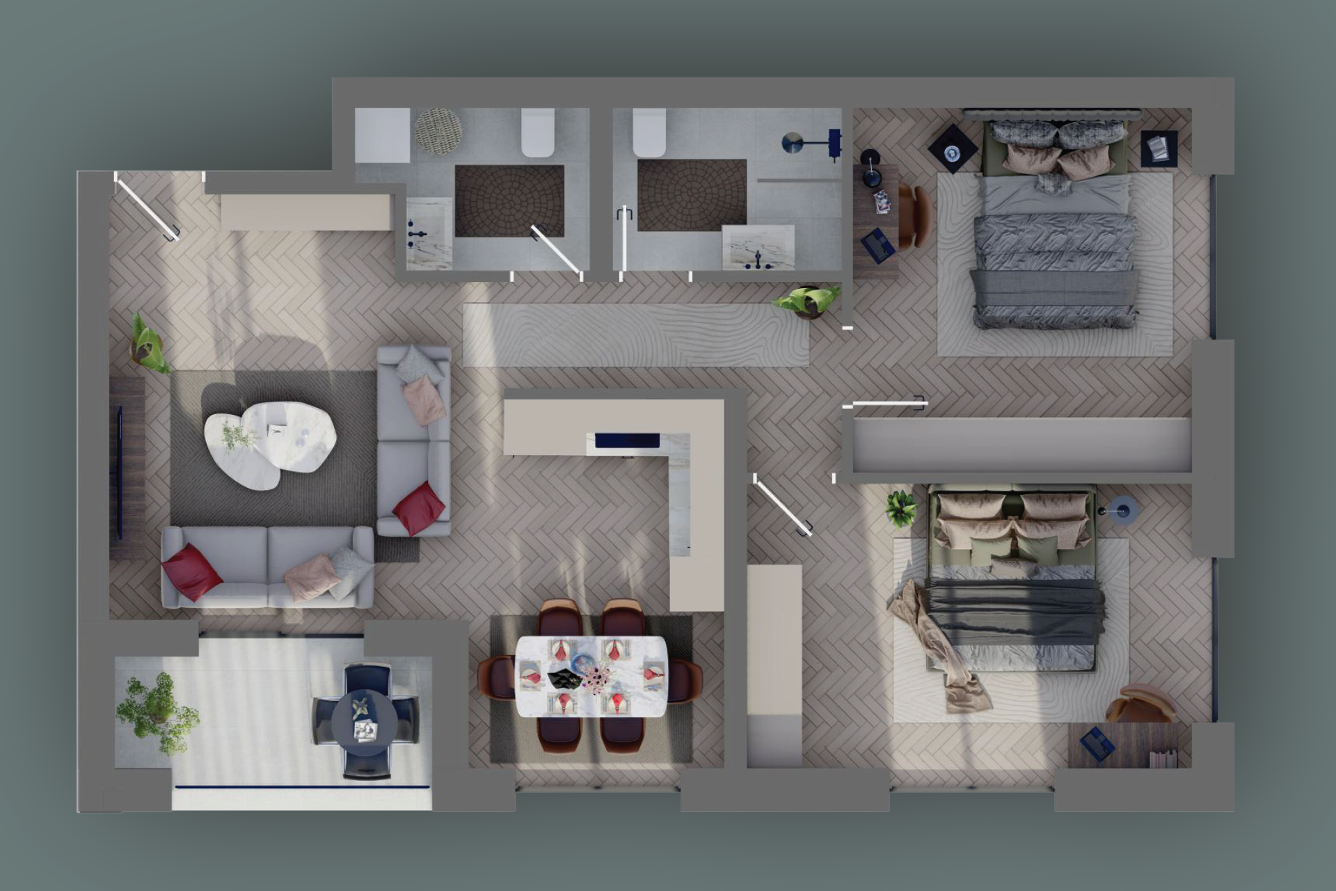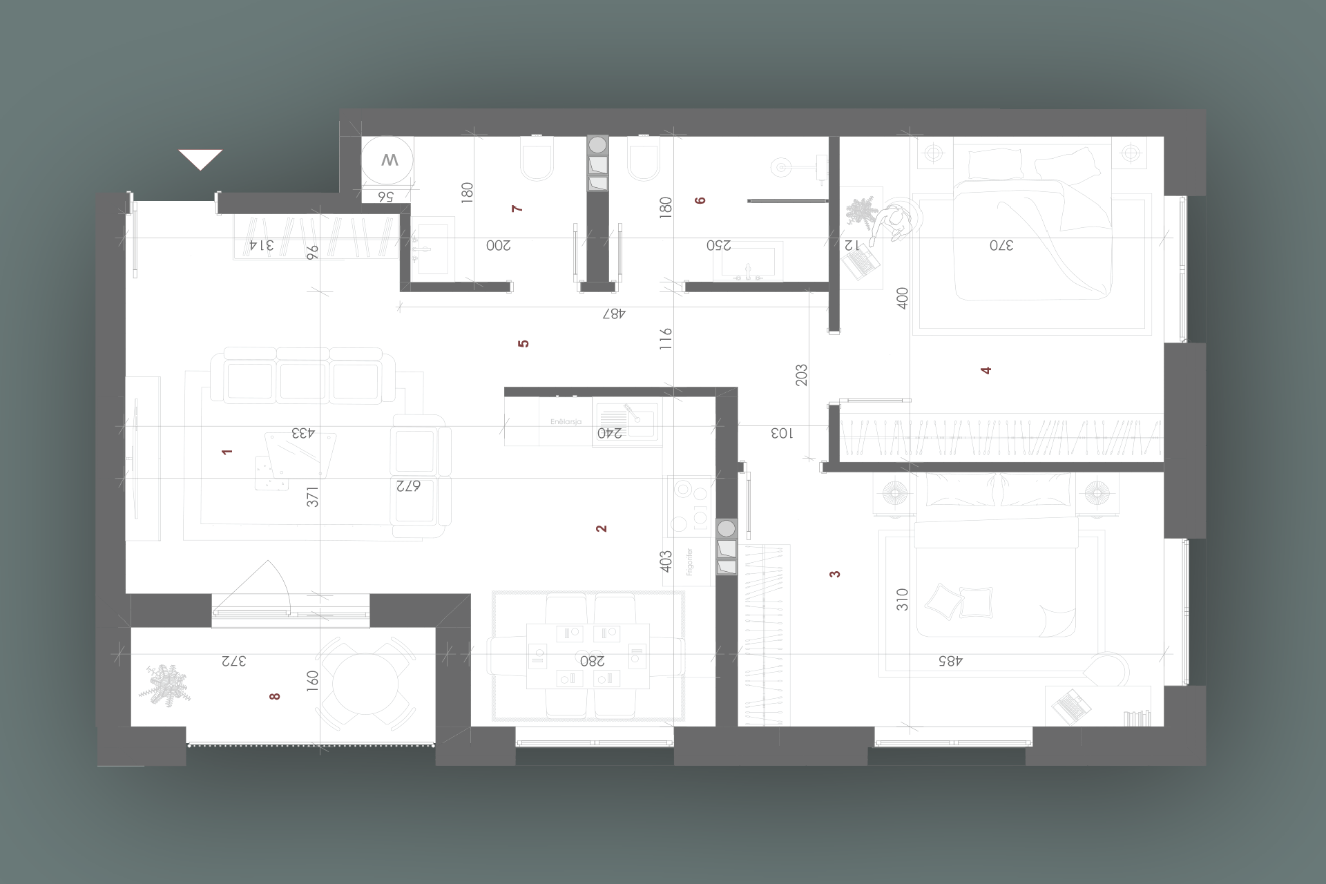 Kjo banesë ofron një ambient të ndriçuar dhe të mirëorganizuar për një jetesë të rehatshme dhe moderne. Qëndrimi ditor është ideal për relaks dhe shoqërim, ndërsa kuzhina dhe tryezaria krijojnë një hapësirë të përshtatshme për gatime dhe vakte familjare. Dhoma e gjumit ofron rehati dhe privatësi, perfekte për një pushim të qetë. Koridori lehtëson lëvizjet mes hapësirave, ndërsa banjoja siguron komoditet të përditshëm. Loxha është hapësira e përkryer për të shijuar ajrin e freskët dhe për momente relaksi jashtë..