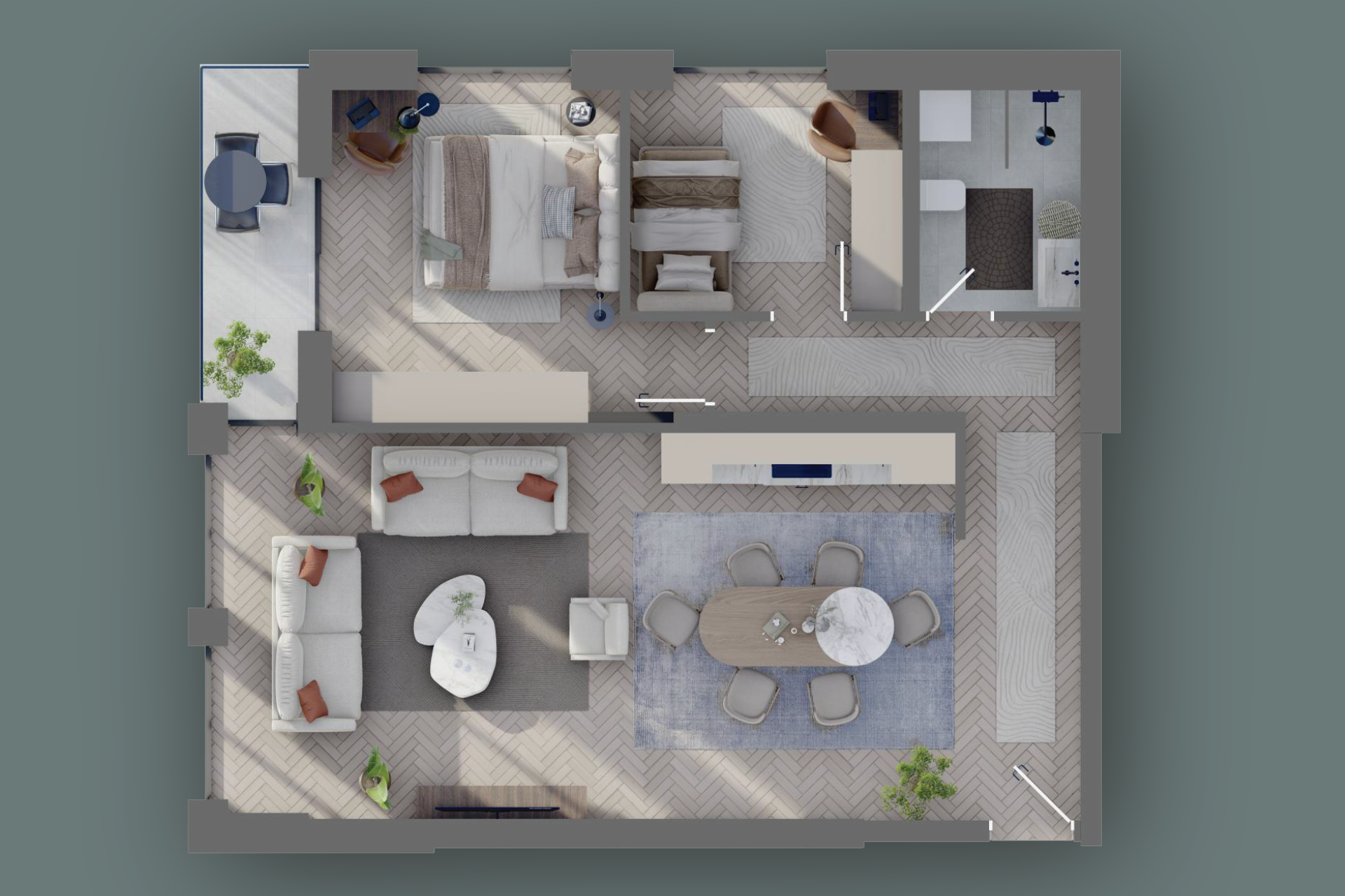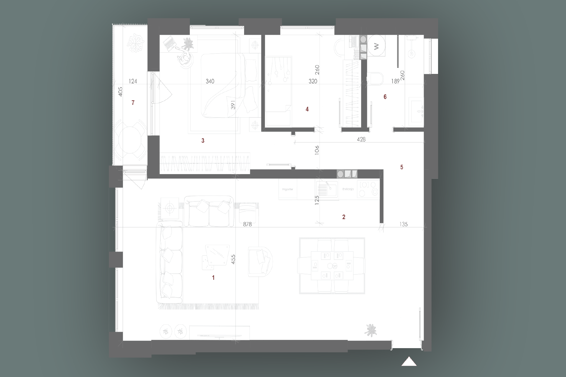 Kjo banesë ofron një ambient të ndriçuar dhe të mirëorganizuar për një jetesë të rehatshme dhe moderne. Qëndrimi ditor është ideal për relaks dhe shoqërim, ndërsa kuzhina dhe tryezaria krijojnë një hapësirë të përshtatshme për gatime dhe vakte familjare. Dhoma e gjumit ofron rehati dhe privatësi, perfekte për një pushim të qetë. Koridori lehtëson lëvizjet mes hapësirave, ndërsa banjoja siguron komoditet të përditshëm. Loxha është hapësira e përkryer për të shijuar ajrin e freskët dhe për momente relaksi jashtë..
